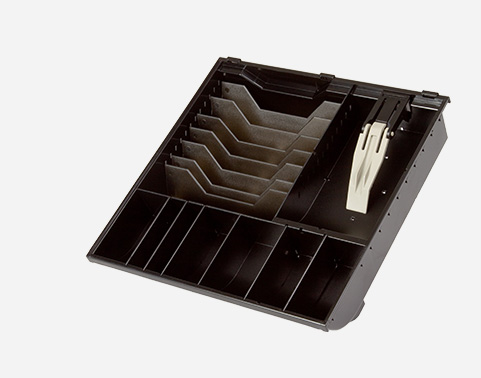 This classic cash drawer – available in wide and compact – opens under application program control and includes a media slot that can fit a document stack up to 20mm (0.75 inches) high. This cash drawer is compatible with a till-and-lock insert or plug, which may be ordered separately.